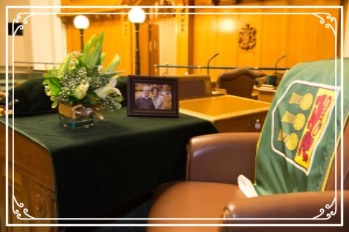 On the final day of the fall sitting of the Saskatchewan Legislature, all members of the Assembly came together to remember him. In honour of Roger, his chair was draped with the Saskatchewan flag and his desk was decorated with a beautiful photo of Roger and his wife Sheila. His political family will miss him and will remember his dedication to his city and our province.
