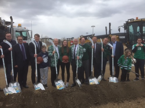 Donors and officials used personalized shovels with hockey stick handles for the sod turning of Merlis Belsher Place on April 28, 2017.