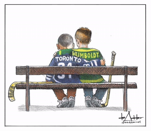 92.9 The Bull - Powerful drawing from cartoonist Michael de Adder. Toronto, we are with you #TorontoStrong #HumboldtStrong