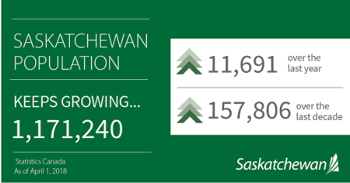 SASKATCHEWAN POPULATION GROWS TO MORE THAN 1.17 MILLION