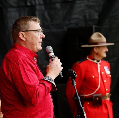 PREMIER SCOTT MOE ADDRESSES THE CROWD AT CANADA DAY CELEBRATIONS IN SASKATOON