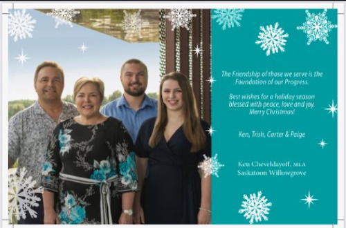 Christmas is a special time of year when we celebrate faith, family, and goodwill towards others. It is also a time to be thankful for the beautiful province in which we live and for the freedoms we enjoy. Regardless of the special traditions you may embrace, please be mindful of those who cannot be home with their own families and friends. I offer my deepest thanks and Merry Christmas wishes to members of the Canadian Forces here at home or deployed overseas.