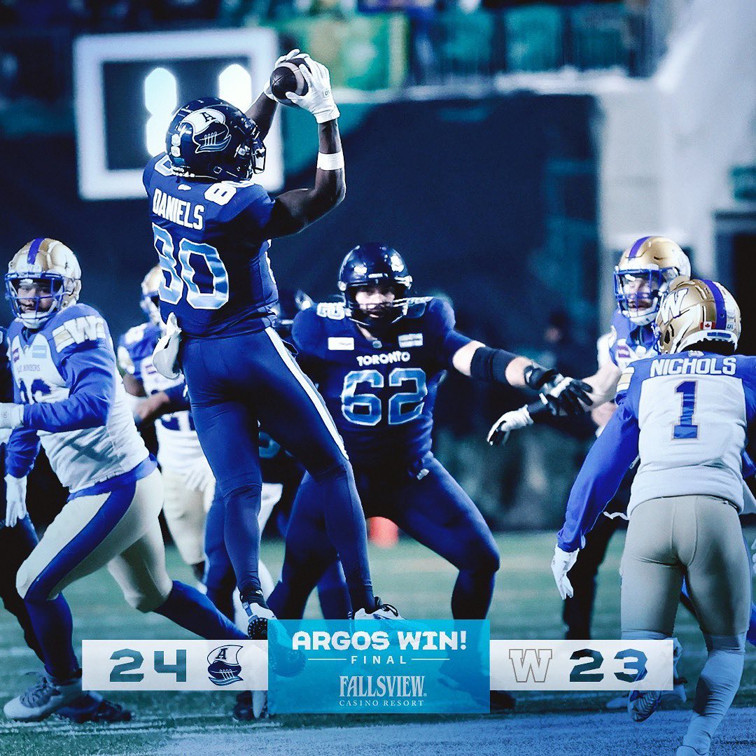 Thank you to the Winnipeg Blue Bombers and the Toronto Argonauts for an exciting game. Congratulations to the Grey Cup Champions, the Toronto Argonauts.