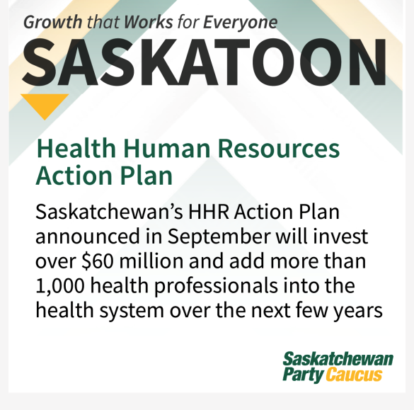 Our governments ambitious Health Human Resources Action plan will continue to help grow Saskatchewan's healthcare workforce adding over 1,000 new positions over the next number of years.