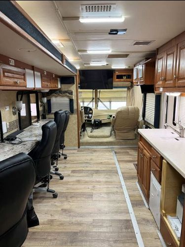 The Mobile Command Post (MCP) is a customized 37-foot, self-propelled unit that can be dispatched to incidents and act as the central command, or the main hub, for public safety staff at an event. The vehicle is equipped with multiple tools and resources that assist personnel during an incident, including radio communications, weather forecasting equipment and various video devices.