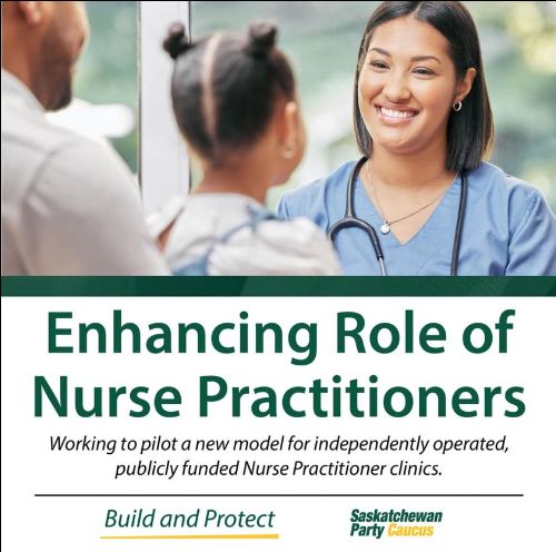 As our government continues work to increase health human resources, we are exploring ways to expand the use of Nurse Practitioners across the health care system. The Ministry of Health is working to pilot a new model for independently-operated, publicly-funded Nurse Practitioner clinics. These new clinics will help to improve access to health care services for Saskatchewan patients and their families.