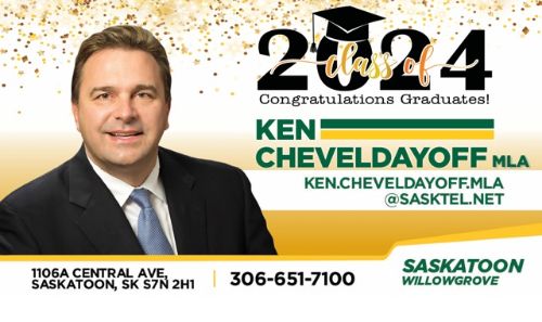 As a Member of the Legislative Assembly, I remain committed to supporting you, the graduating class of 2024 as you move forward into the next chapter of your lives. My hope is that you find fulfillment, purpose, and endless opportunities to make your mark on the world. Congratulations. May your future be filled with success, happiness, and endless possibilities.