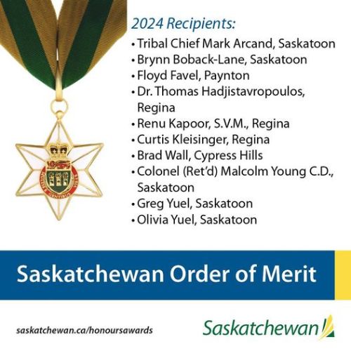 10 of Saskatchewan's best will be invested with the province's highest honour, the Saskatchewan Order of Merit. Lieutenant Governor Russ Mirasty will invest the 2024 recipients at a formal ceremony in Regina.