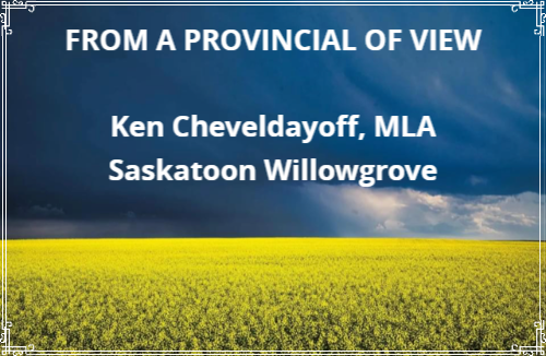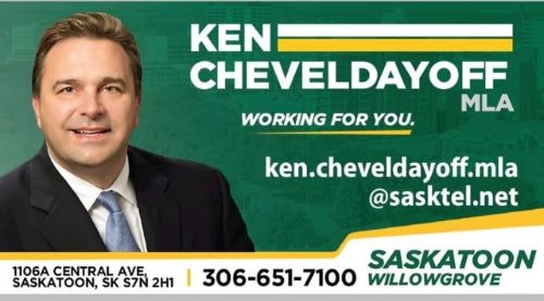 As Saskatchewan’s economy continues to grow, I look forward to hearing from you. You can reach my office at ken.cheveldayoff.mla@sasktel.net or call .306.651.7100