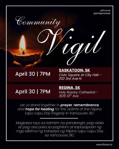The Government of Saskatchewan stands with the Filipino Community in their time of sorrow and grief.
